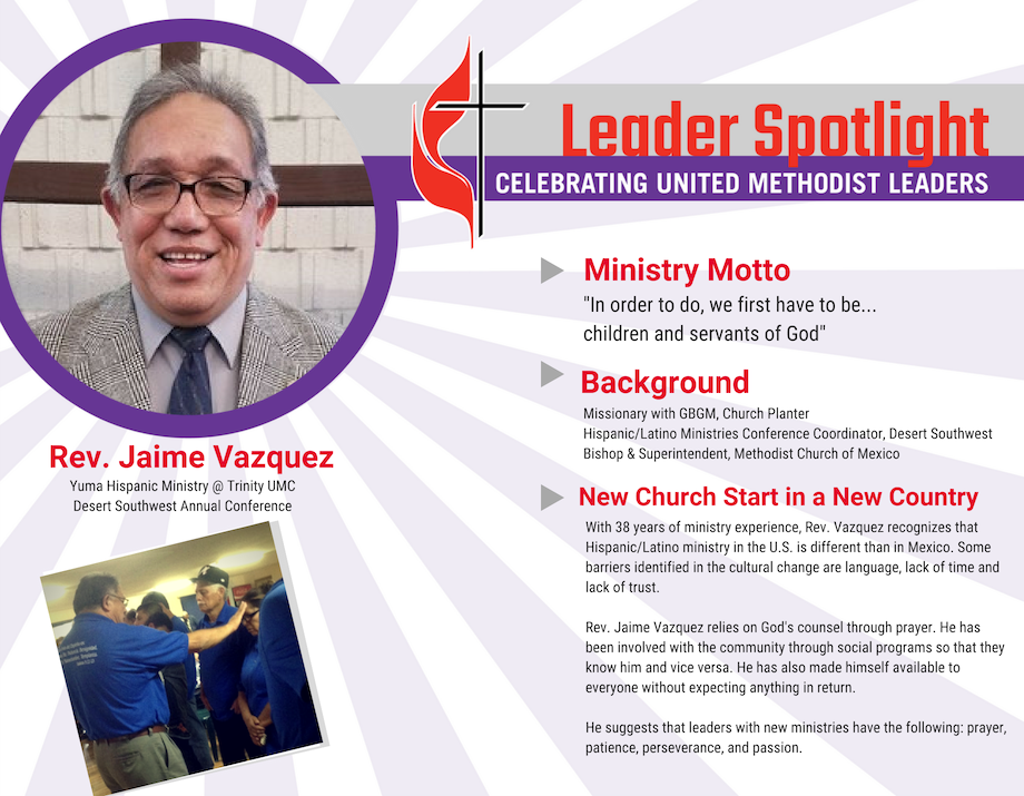 The Rev. Jaime Vazquez first came to the United States from Mexico in 2011 as a missionary through the General Board of Global Ministries to serve as coordinator of Hispanic ministries for the Desert Southwest Conference. While parts of the American culture and system are still new to him, what is not new is his strategic practice of seeking God's counsel in everything.