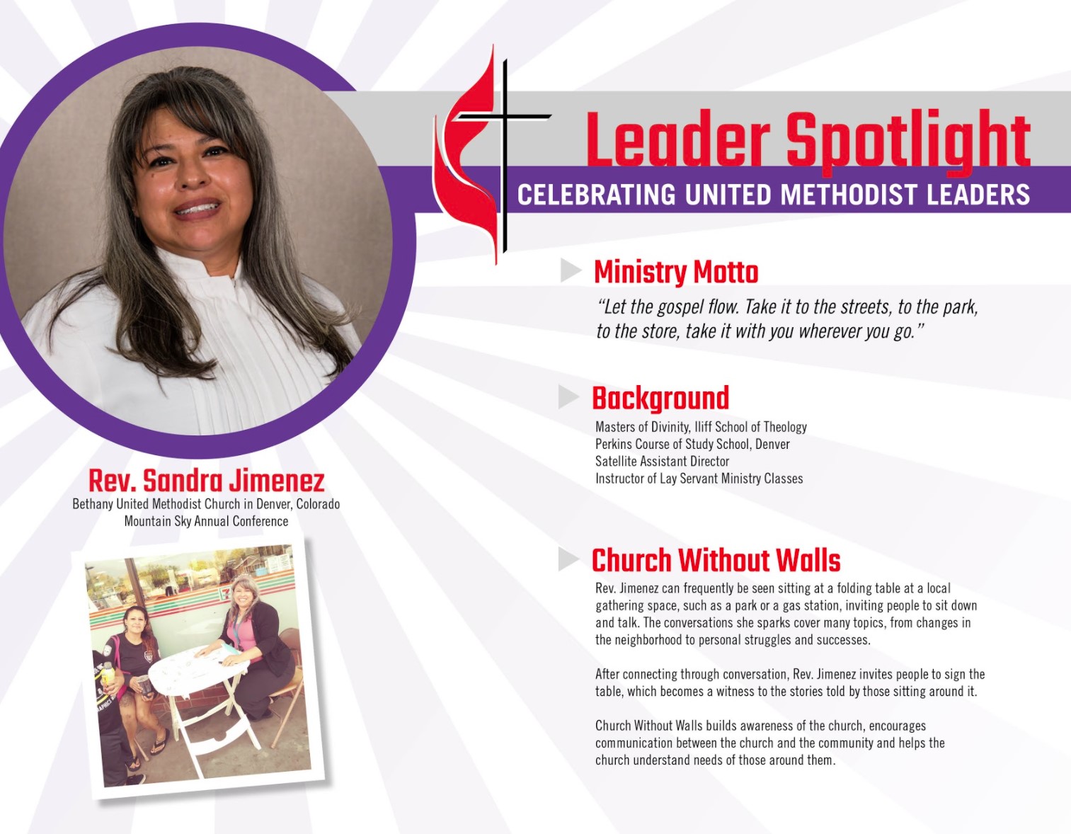 The Rev. Sandra Jimenez is a pastor at Bethany United Methodist Church of the Mountain Sky Conference (formerly known as the Rocky Mountain Conference). Jimenez is not only a pastor to her congregation but also to the surrounding Barnum neighborhood in Denver. While Bethany is an English-speaking congregation, Mission Insite statistics show the population of ZIP code to be 79 percent Hispanic.