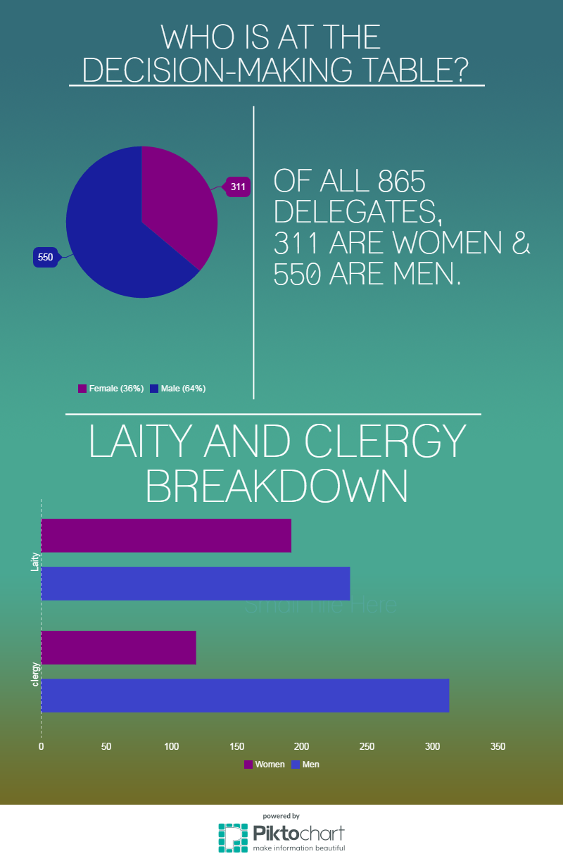• Of the 311 female delegates, 192 (61%) are laity and 119 (38%) are clergy