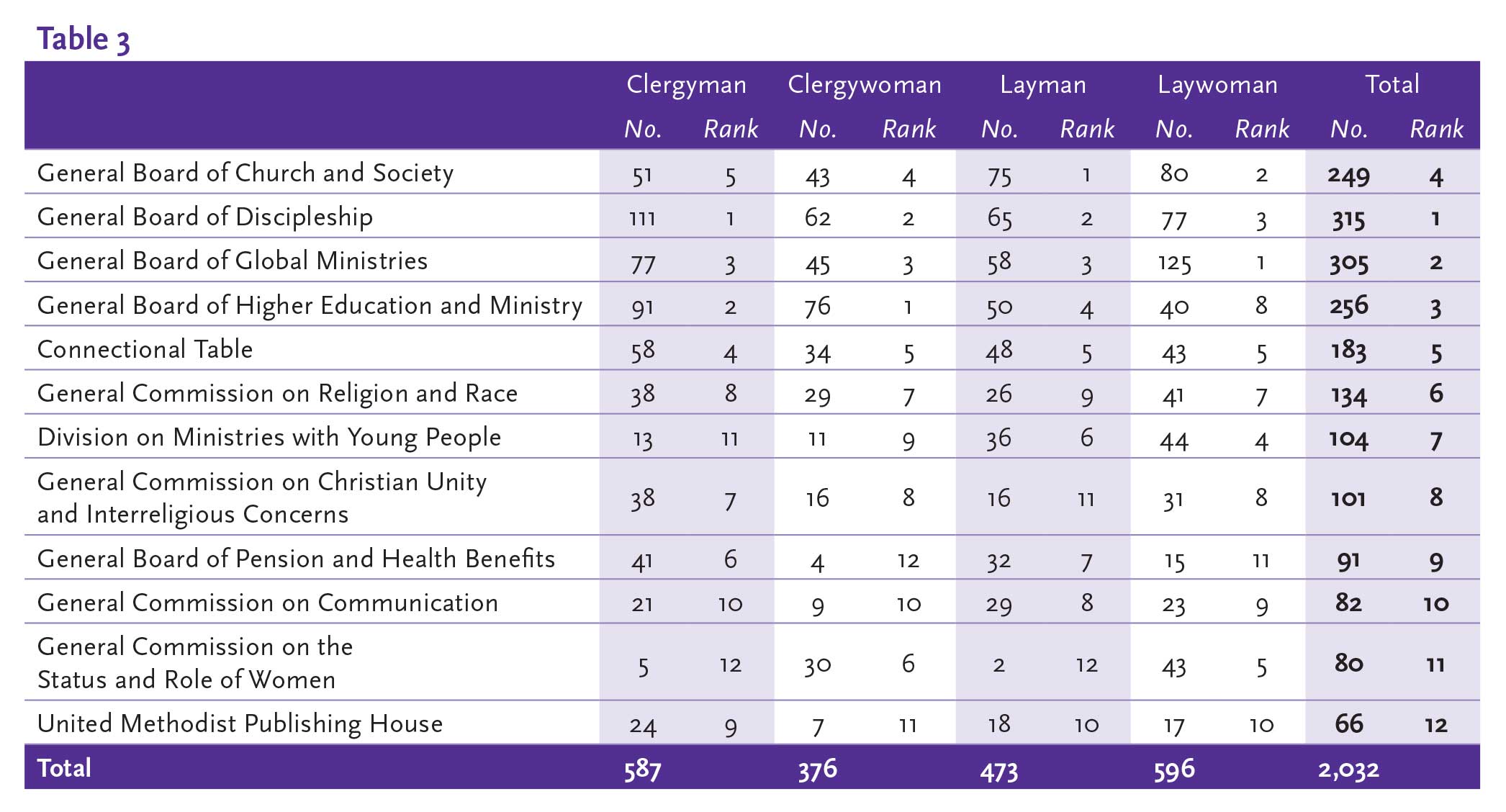 Most clergymen rank the Connectional Table as their fourth choice and drop the General Board of Church and Society to fifth. Overall, laywomen rank Division on Young People as their fourth choice, and the General Board of Higher Education drops to eighth.