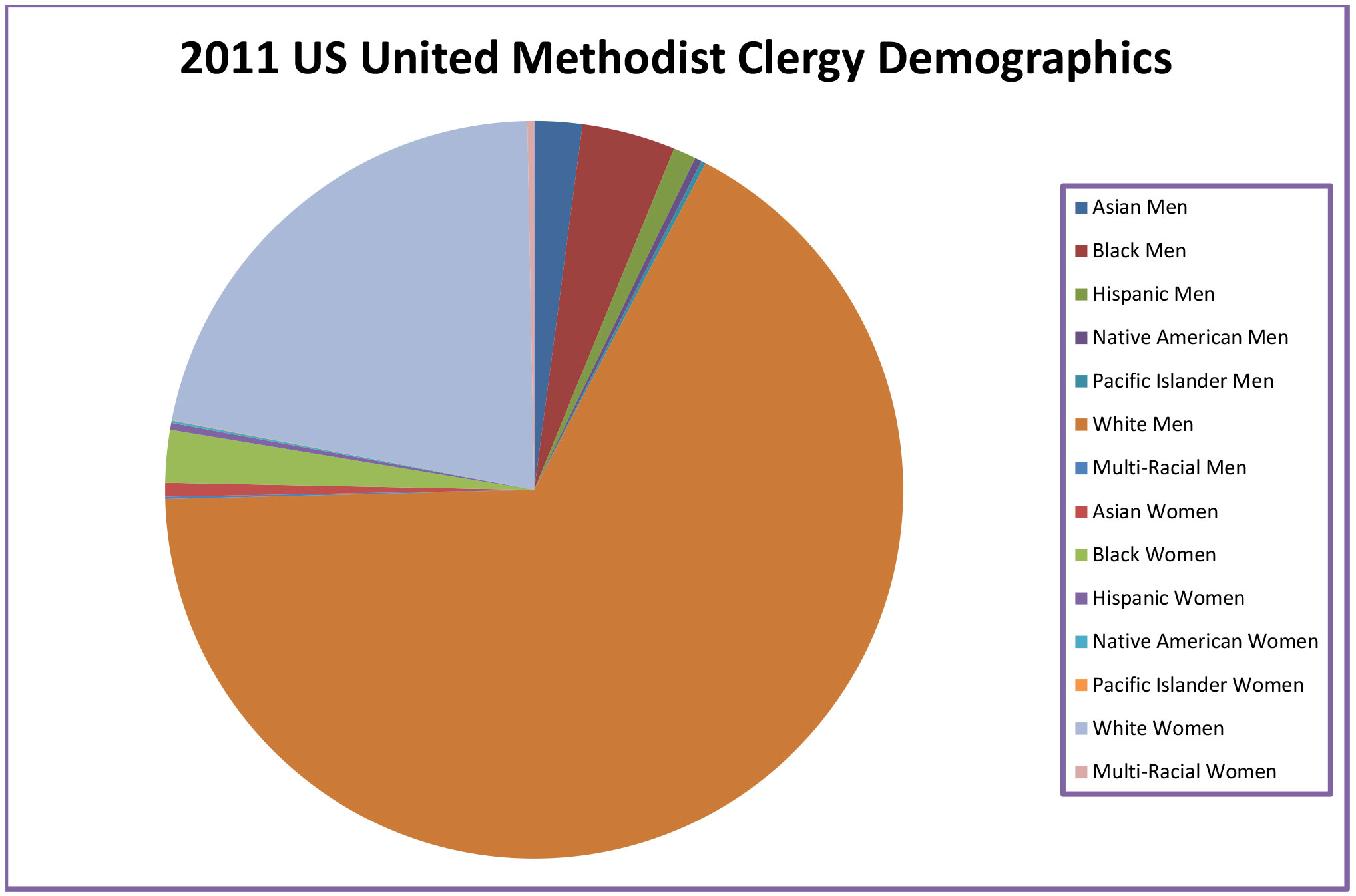 When women of color make up less than 4% of the clergy population in The UMC, it is difficult to discern how much progress has been made in their favor over the last several years. For example, if two Pacific Islander women became Elders in Full Connection, the 2011 number would increase by 25%. If two White women become Elders in Full Connection, the difference would hardly be noticeable.