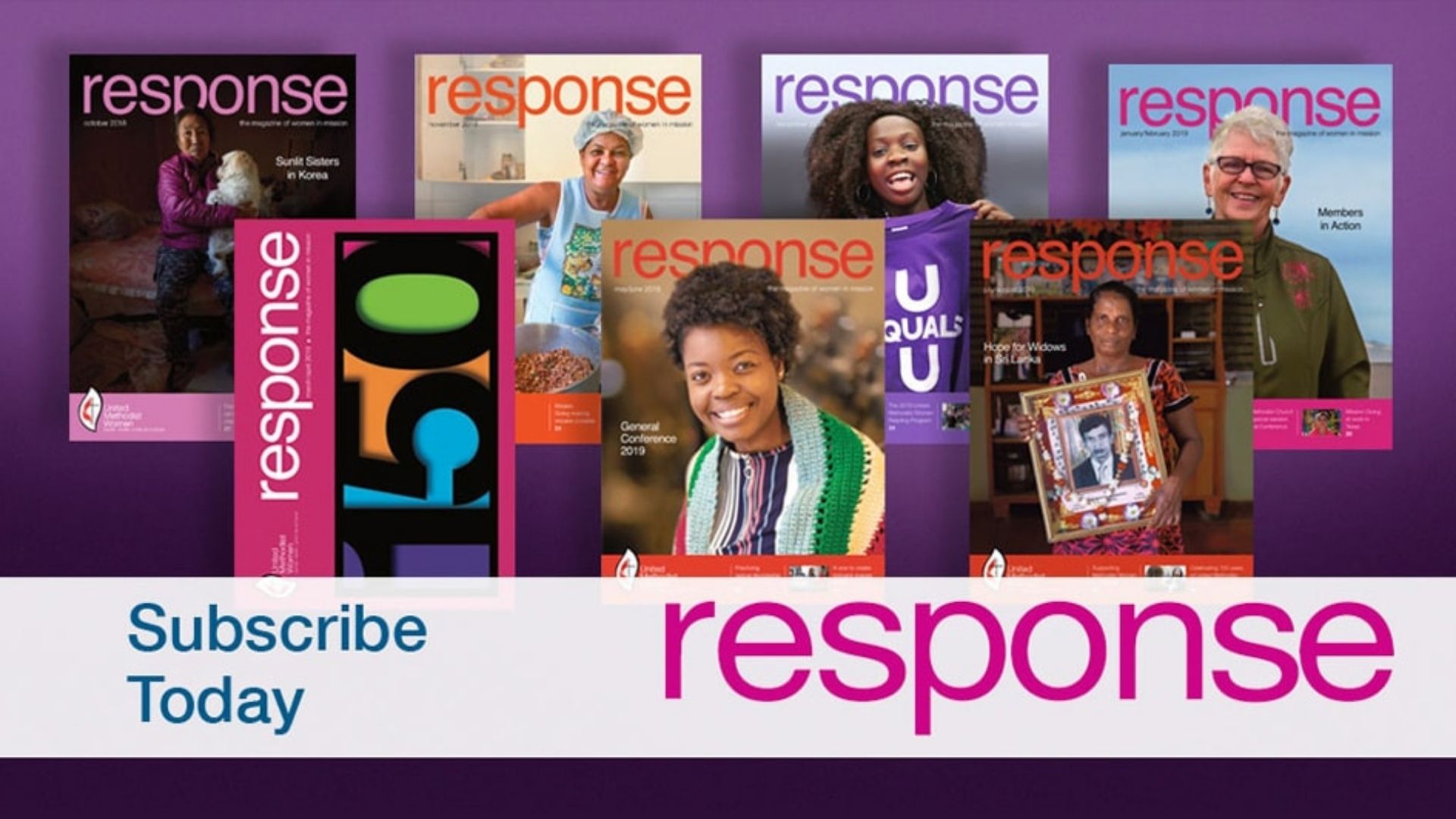 response, una publicación reconocida, es la revista oficial de Mujeres Metodistas Unidas y es publicada por la oficina nacional. Cada edición tocará tu corazón, sacudirá tu alma y desafiará tu mente. Los temas y las ediciones cubren el crecimiento espiritual, la extensión de la misión y los informes sobre nuestro trabajo local, nacional e internacional. response incluye: Estudios bíblicos, Oportunidades para el crecimiento y desarrollo espiritual, Sugerencias de programas, Artículos sobre personas y proyectos apoyados por su Donación para Misiones y más.