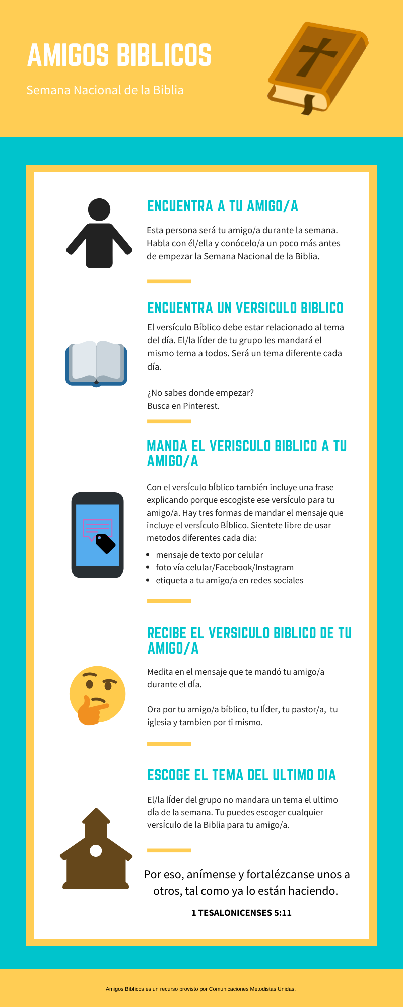 Nota: *Los Amigos Bíblicos deben ser asignados y la actividad debe ser presentada antes de que comience la Semana Nacional de la Biblia. Este año se celebra noviembre 24-30 de 2019.