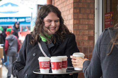 Considere la posibilidad de organizar un evento de confraternidad con chocolate caliente en un lugar donde la gente se reúna con espíritu festivo durante la temporada navideña, como un: