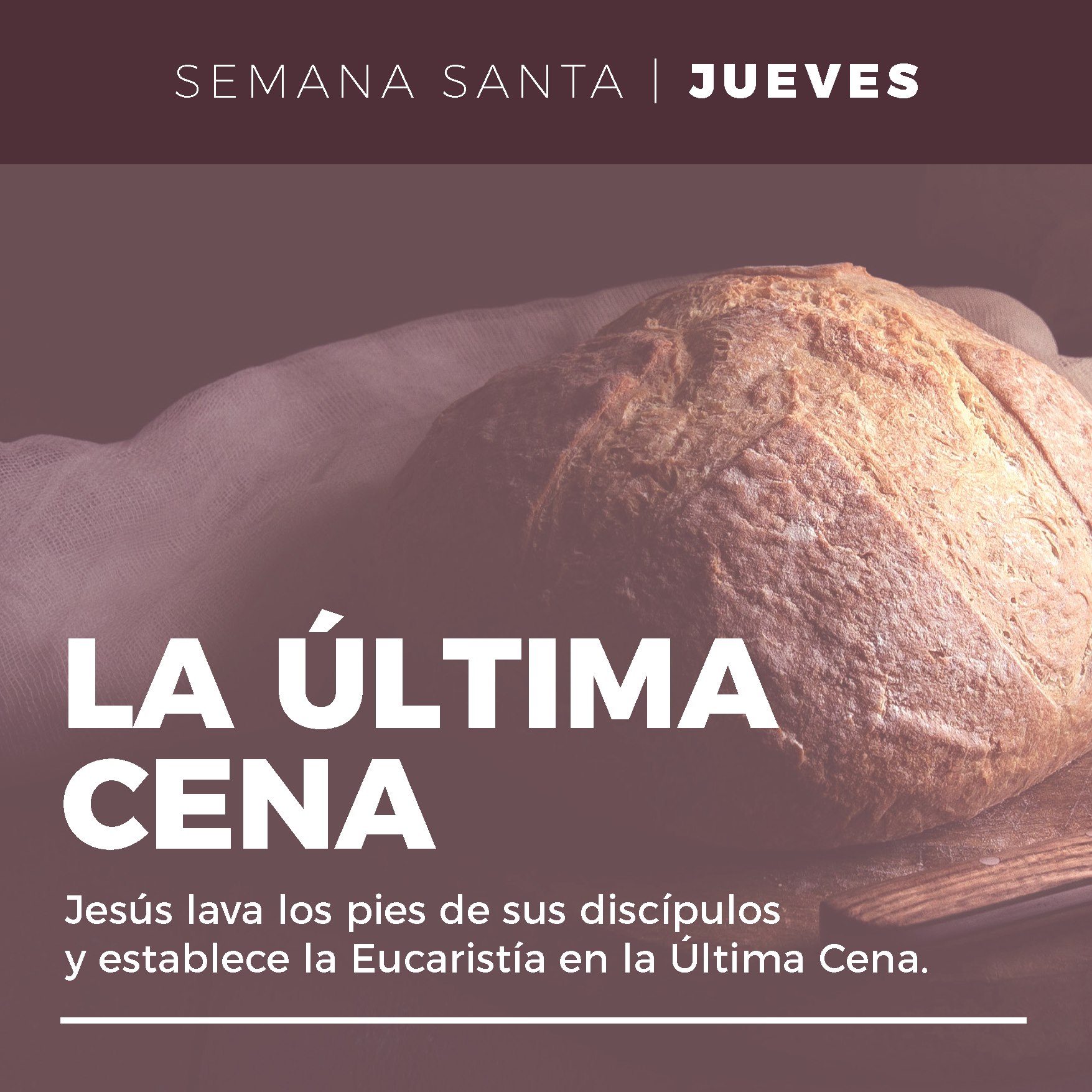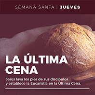 Se sugiere que publique las siguientes imagenes cada dia de la Semana Santa en sus redes sociales y como una "Story". Puede compartir un enlace a una breve reflexión suya o blog de su página web sobre el acontecimiento mencionado en la imagen.