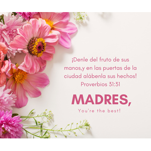 Tenemos una variedad de imágenes con versos bíblicos que puede compartir para el día de las madres por las redes sociales, su página web o utilizarlas durante los cultos virtual. Descargue las gráficas gratis aquí.