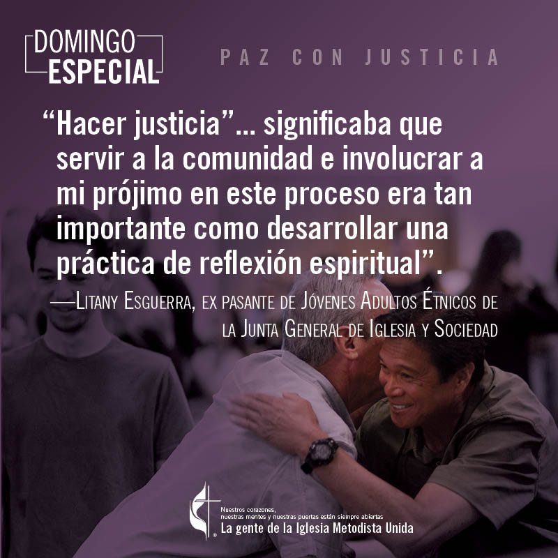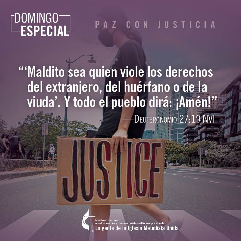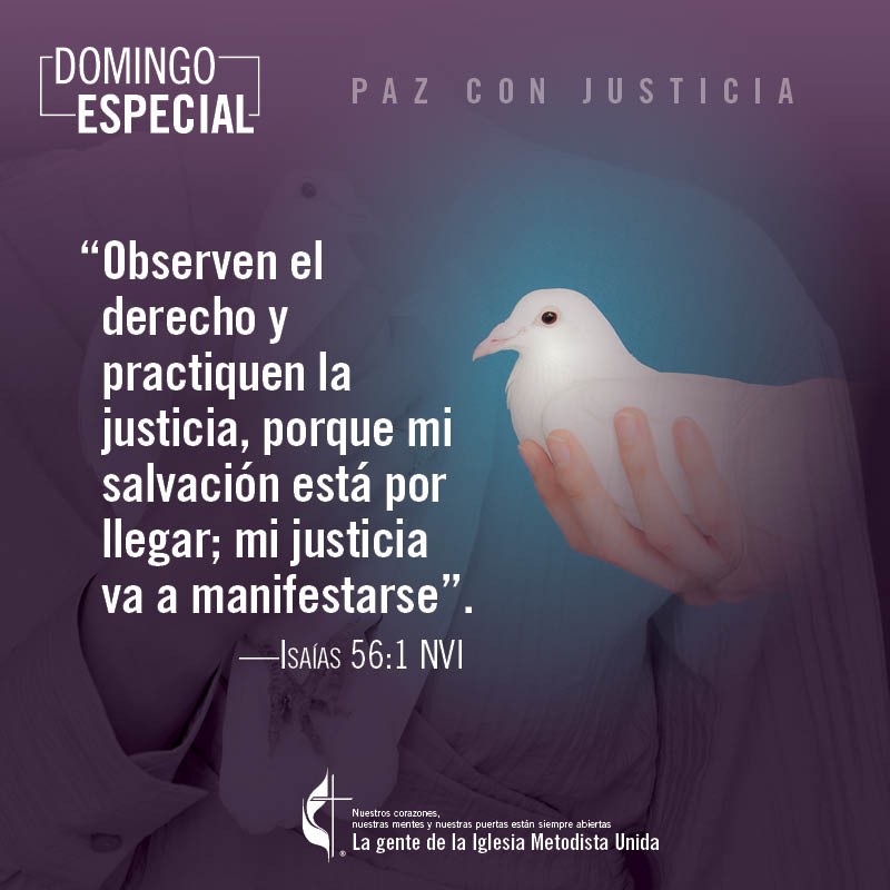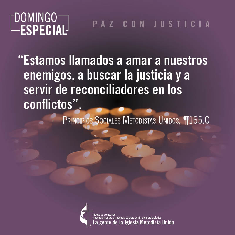 Este Domingo Especial es uno de varios que se apartan en todas las Iglesia Metodistas Unidas para dar una ofrenda especial. Históricamente, el Domingo de Paz con Justicia se ha celebrado el primer domingo después de Pentecostés. El Pentecostés celebra el derramamiento del Espíritu Santo que clama por el shalom de Dios. Paz con Justicia es un testimonio de la demanda de Dios por un mundo fiel, justo, no armado y seguro (¶263, 5). La ofrenda recaudada este día apoya a los ministerios de Paz con Justicia en las conferencias anuales a través de subsidios y es administrada por el coordinador o la coordinadora de Paz con Justicia de cada conferencia por medio de la Junta General de Iglesia y Sociedad.